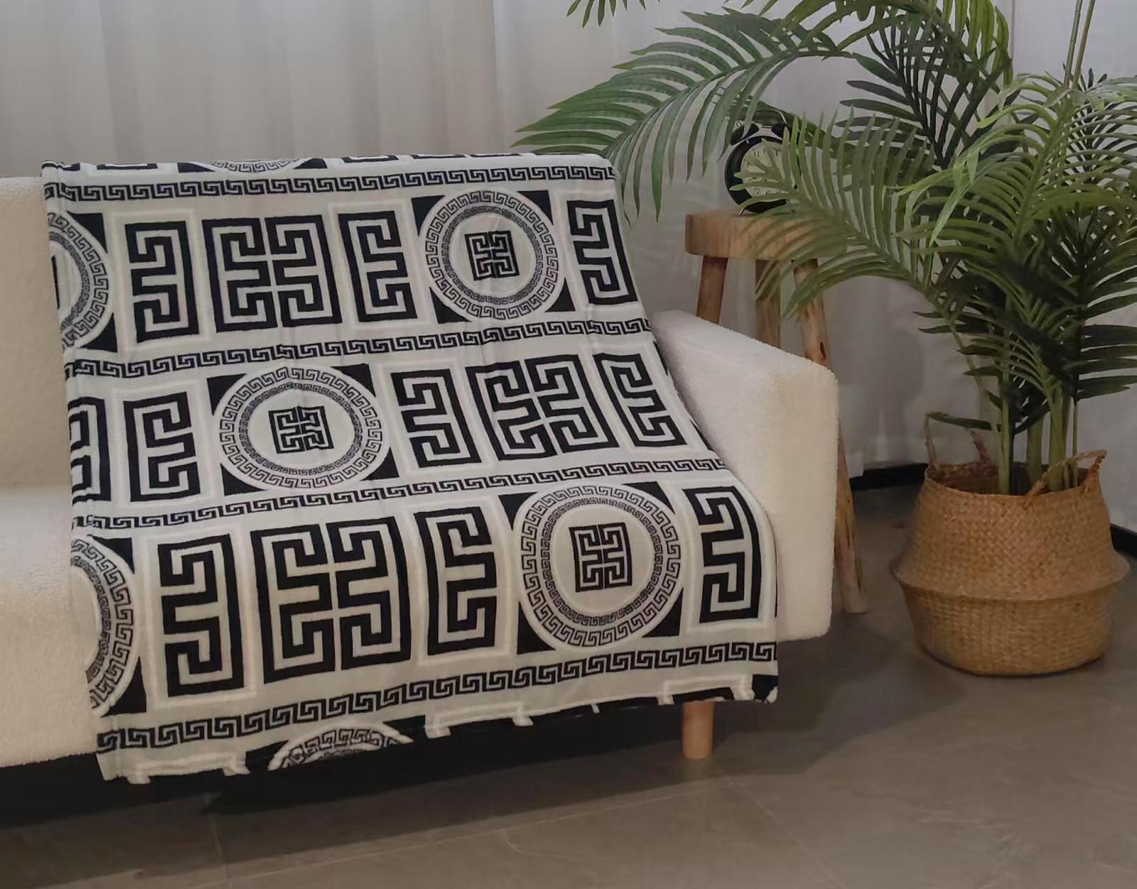 Elevate your living space with our stylish thin blanket, perfect for summer nights or as a decorative throw. Featuring a striking Greek-inspired pattern, it effortlessly complements modern, bohemian, and classic interiors. The lightweight fabric provides just the right amount of comfort without overheating, making it ideal for warm weather or layering during cooler evenings.